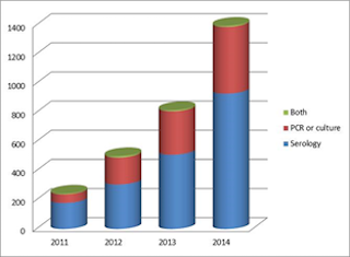 - Enfin, la recrudescence depuis les années 2000 pourrait aussi être la conséquence des meilleures possibilités de diagnostic, entre autres par analyses PCR, d’une attention accrue au problème et des remboursements des tests sérologiques [5].